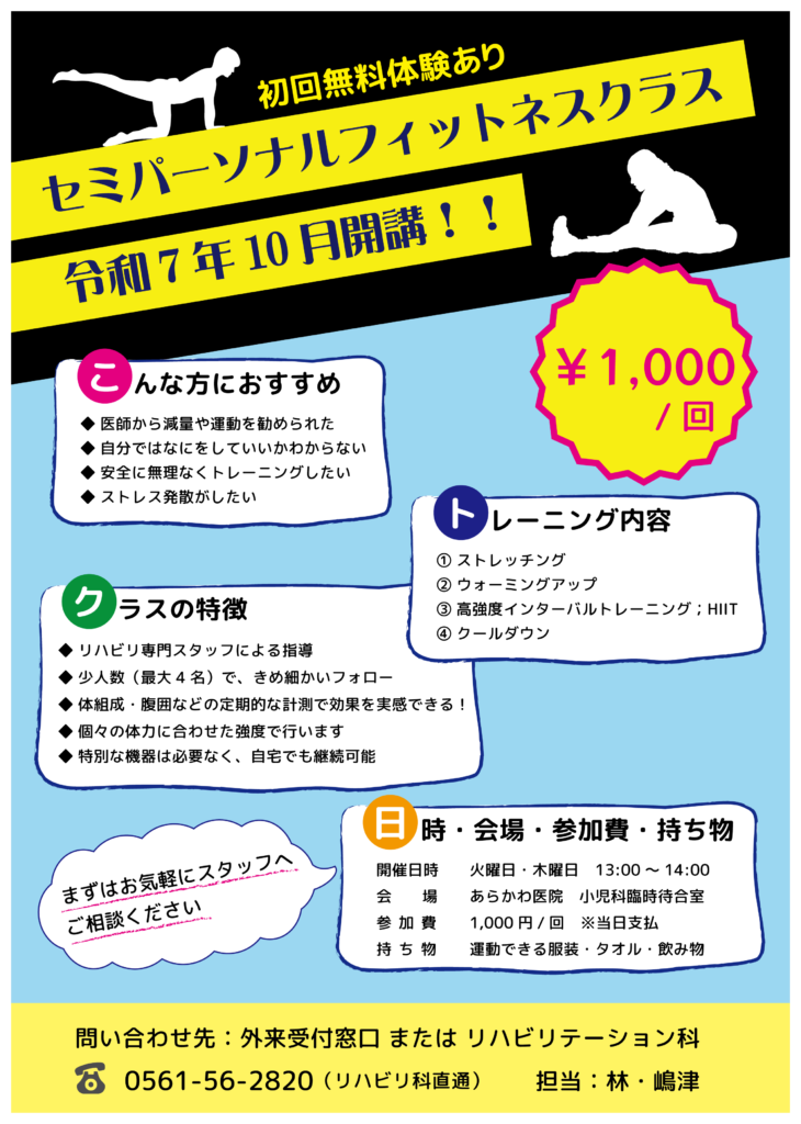 予約・問い合わせ先:☎️0561-56-2820(リハビリ科直通)